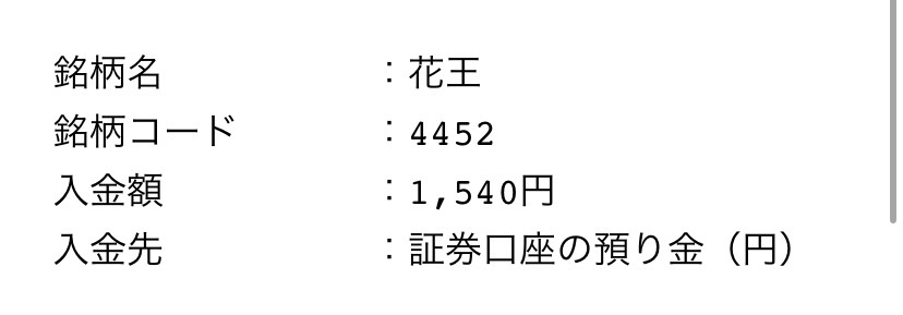 今回、僕の証券口座に届いたのは、花王株式会社からの期末配当金です。