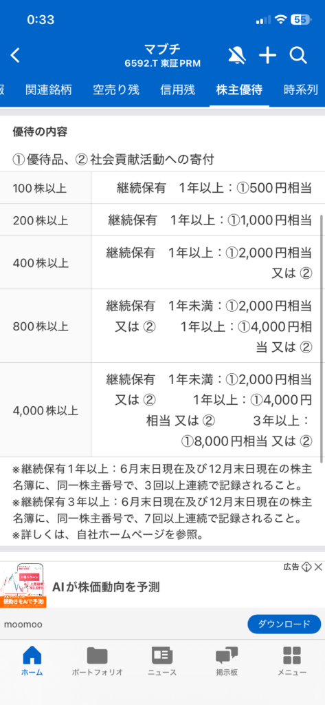 といった具合に、保有期間や株数が増えるほど内容も豪華になります。