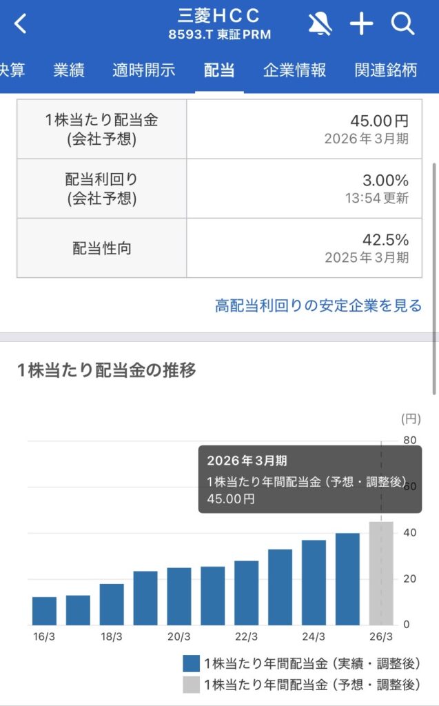 特に驚いたのは、利益の伸びが非常に大きいことです。世界中で飛行機や不動産のビジネスがうまく回り、グループ全体の底力を見せつけました。おかげで配当金もしっかり増える見込みで、連続増配の記録をまた一つ更新しようとしています。私たち株主にとっては、これ以上ない安心材料ですね。